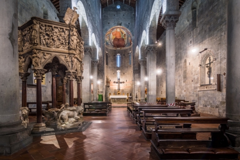 All’interno si trova il celebre pulpito di Giovanni Pisano, firmato e datato 1301: capolavoro di scultura e micro-architettura. Un’opera conosciuta, apprezzata e studiata in tutto il mondo, ma che risente di problemi statici che e necessita di monitoraggi studi continui, ultimamente sovvenzionati dai benefattori di “Friends of Florence”.