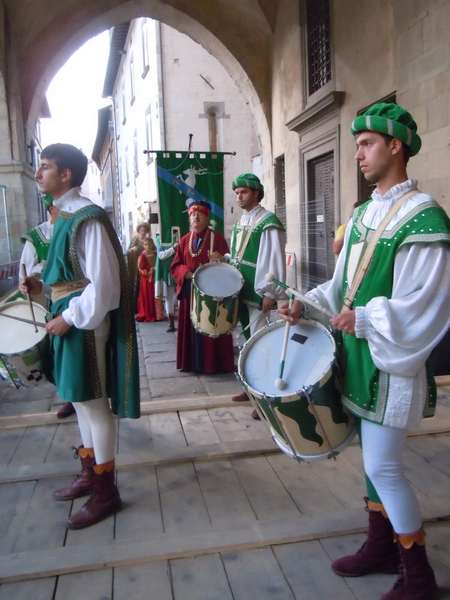 Il programma del 25 luglio, San Jacopo, avrà inizio alle 10 con la processione dei ceri e la sfilata storica. I figuranti in abiti medievali - presenti anche tamburini e sbandieratori della Compagnia dell'Orso – si ritroveranno in piazzetta Romana e daranno il via al corteo all'interno della prima e più antica cerchia di mura: da piazzetta Romana, attraverseranno via Castel Cellesi, piazza Gavinana, via Buozzi, via Curtatone e Montanara, via Abbi Pazienza, via Filippo Pacini, via Palestro, via Cavour, via Roma, con arrivo in piazza Duomo.
