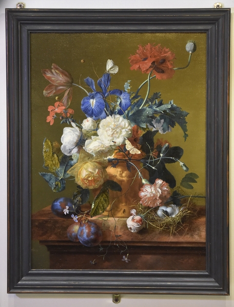 Il Vaso di fiori – soggetto prediletto dell’artista – fu acquistato nel 1824 dal granduca Leopoldo II d’Asburgo-Lorena (1797-1870: scherzosamente soprannominato “Canapone” dai Toscani) per completare la più grande e diversificata collezione di nature morte al mondo, messa insieme a Palazzo Pitti dal suo predecessore Cosimo III de’ Medici (1642-1723). Cosimo III nutriva una particolare passione per la pittura olandese, tanto che nel 1667 si era recato ad Amsterdam per omaggiare l’anziano Rembrandt e acquistare numerosi dipinti da diversi maestri. I granduchi lorenesi che subentrarono ai Medici nel 1737 sin da subito mostrarono di voler continuare ad arricchire le collezioni fiorentine, portando capolavori dalle loro residenze oltremontane e acquistando tante altre opere d’arte per gli Uffizi e Palazzo Pitti sul mercato nazionale e internazionale di allora.
