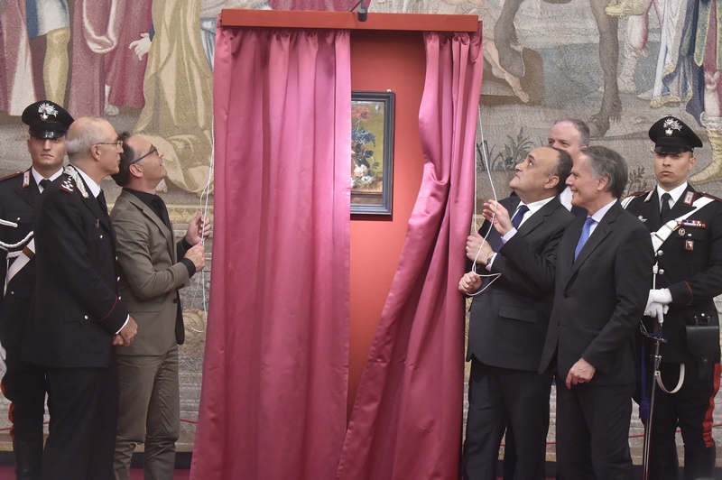 Dopo 75 anni di assenza dall’Italia, il 19 luglio 2019 il Vaso di Fiori viene restituito dalla Repubblica Federale Tedesca alla Repubblica Italiana in una cerimonia solenne nella Sala Bianca di Palazzo Pitti, in presenza del Ministro per i Beni e le Attività Culturali, dei due Ministri degli Affari Esteri di Italia e Germania, del Comandante Generale dell’Arma dei Carabinieri, del Direttore delle Gallerie degli Uffizi e di molte autorità intervenute per celebrare questa storica occasione.