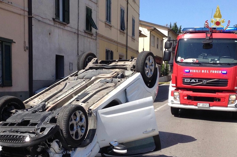 Incidente tra due auto questa mattina, intorno alle 10.30, a Pontedera, in località La rotta sulla Toscoromagnola. Uno dei due mezzi si è cappottato e il conducente è stato trasportato all'ospedale di Pontedera. Non sono chiare le sue condizioni. Sul posto sono intervenuti oltre ai sanitari anche i vigili del fuoco di Cascina e i carabinieri. Il transito dei veicoli è rimasto interrotto per oltre un'ora.