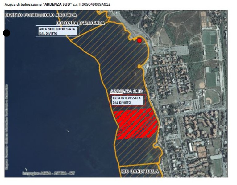 L’Amministrazione comunale di Livorno ha disposto il divieto temporaneo di balneazione in una porzione dello specchio d’acqua denominato “Ardenza Sud” (identificato in cartografia con il codice IT009049009A013), costituita da un tratto di costa lungo un centinaio di metri in corrispondenza di via Catanzaro (50 m. a nord e 50 m. a sud rispetto all'intersezione tra il viale di Antignano e via Catanzaro).