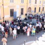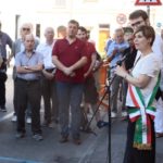 Dopo la messa, il corteo con in testa il gonfalone comunale ha raggiunto piazza 24 luglio e il sindaco Brenda Barnini, a nome dell'amministrazione comunale, ha deposto una corona di alloro alla Lapide-Ricordo.