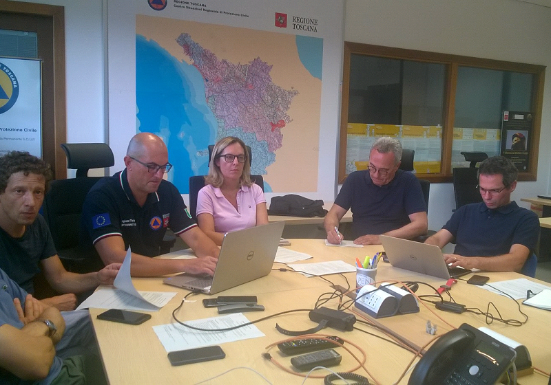 Lo hanno annunciato oggi pomeriggio gli assessori regionali all'ambiente Federica Fratoni e alla presidenza Vittorio Bugli, incontrando i giornalisti alla fine della riunione che si è tenuta nella sede della Soup in via Val di Pesa, per fare il punto sui danni causati dai forti temporali di ieri e di stanotte. Oltre ai due assessori, alla riunione hanno partecipato Giovanni Massini, direttore della direzione Difesa del suolo e protezione civile, Bernardo Mazzanti, dirigente del settore Protezione civile, e Bernardo Gozzini, direttore del Lamma. I rappresentanti di Prefetture, Province e Comuni erano collegati in videoconferenza: le Prefetture di Siena, Pisa, Arezzo e Grosseto; le Province di Firenze, Pistoia, Arezzo, Lucca, Grosseto, Livorno; i Comuni di Montelupo, Abbadia San Salvatore, Marciano, Certaldo, Gambassi, Firenze.