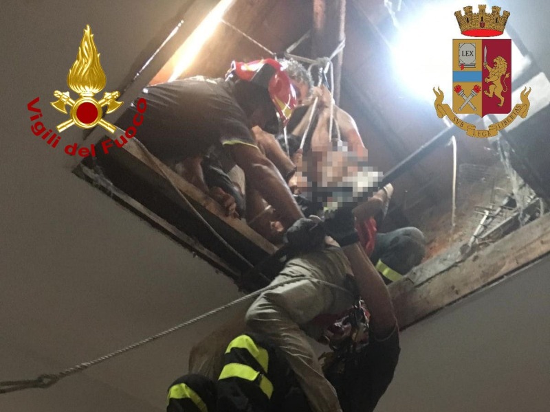 Intervento di salvataggio di polizia e vigili del fuoco in quel di Lucca, negli ex Macelli. L'uomo è caduto nel vuoto dopo la rottura del lucernaio ed è precipitato dall'apertura del solaio sopra la tromba delle scale, 3 piani di scale. Ha avuto la prontezza di spirito per aggrapparsi con una mano all'estremità dell'apertura. Gli altri operai si sono fiondati ad aiutare l'uomo, senza però riuscire a sollevarlo. La situazione era resa complicata dagli spazi stretti e dalla precaria stabilità del solaio. Così sono stati chiamati le volanti della polizia e i vigili del fuoco. Questi ultimi con l'autoscala si sono calati con tecniche SAF (Speleo Alpino Fluviali) e hanno imbracato l'uomo per metterlo in salvo. L'operaio ha riportato solo qualche graffio e domani potrà festeggiare il suo compleanno.