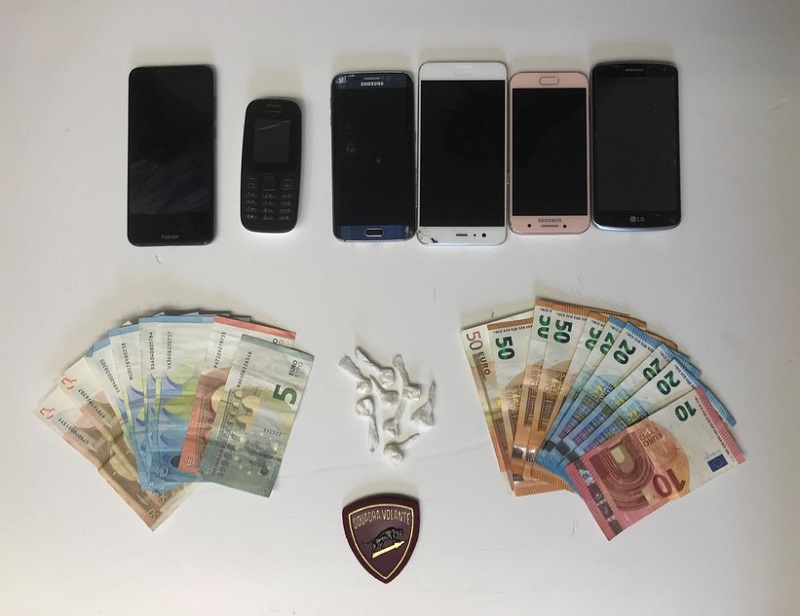 L’intuizione investigativa dava ragione agli operanti che riuscivano a rinvenire, addosso a entrambi i soggetti, 8 dosi di cocaina confezionate per lo spaccio, 540,00 Euro in banconote di diverso taglio, probabile provento dell’attività delittuosa, e 6 telefoni cellulari.