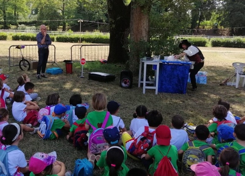 Tra i vari momenti che hanno radunato tutti i ragazzi e gli operatori che hanno preso parte ai centri estivi, particolarmente emozionante è stata la festa dedicata ai più piccoli, i bambini dai 3 ai 6 anni, organizzata nella Buca del Palio: ad attendere i bambini musica, maghi e clown in un’atmosfera circense. All’ombra degli alberi è andato in scena un entusiasmante spettacolo in cui la magia delle bolle di sapone, del mago burlone, del clown ventriloquo e del violinista presentatore ha coinvolto i bambini tra risate, sorrisi e allegria.