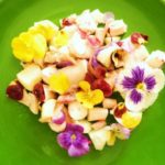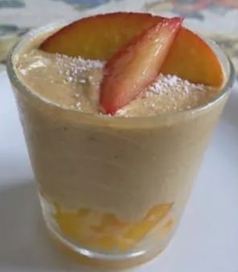mescolate in una pentola il latte di riso con la farina di riso, lo zucchero e portate dolcemente a bollore. A questo punto aggiungete, lavorando con una frusta, la scorza del limone, l’olio di cocco e un pizzico di curcuma e proseguite per circa 5 minuti fino ad ottenere una crema densa. Levate del fuoco e una volta che la crema è raffreddata, eliminate la scorza e sistematela se ce l’avete in una sacca da pasticcere. Sbucciate le pesche e tagliatele a pezzi, poi in un pentolino mescolate con lo zucchero e con 50 gr di acqua. Fate cuocere la frutta per 10-15 minuti, quindi frullatela e lasciatela raffreddare. Preparate la base dei dessert mescolando in una ciotola il riso soffiato con il cacao e lo zucchero fino a quando i chicchi saranno colorati in un modo uniforme. Disponete sul fondo di 4 bicchieri alti il riso al cacao, distribuite la composta di pesche e per ultima la crema di riso, aiutandovi con la sacca da pasticcere o con un cucchiaio. Decorate con fettine di pesca, foglie di menta e fiori per uso alimentare. Tenete i dessert in frigorifero fin al momento di servire. (Maria Elisa Rossi Casciaro (presa dalla rivista Cucina Naturale)