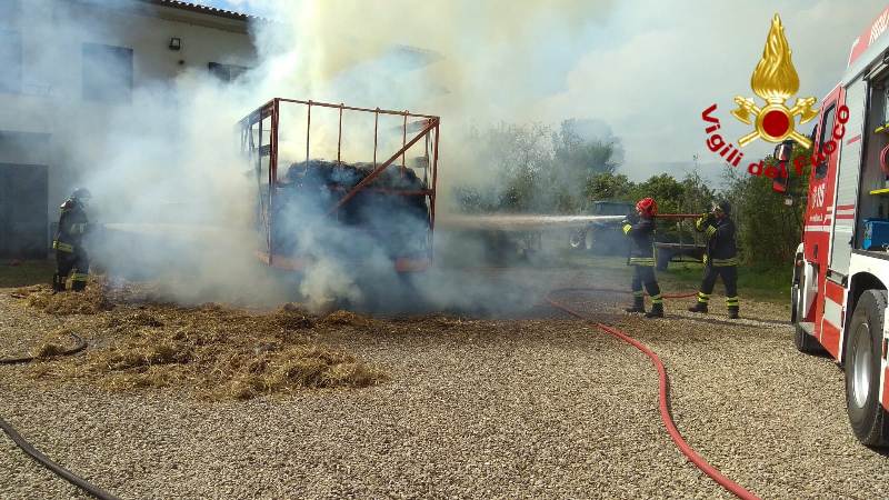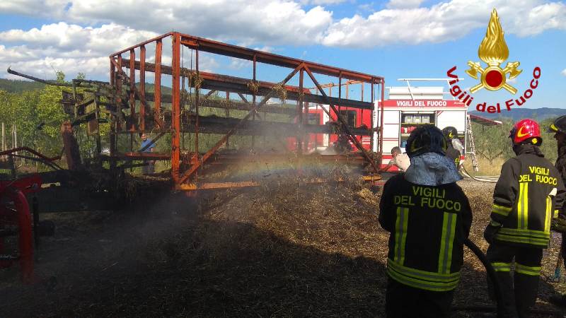 I Vigili del fuoco del Comando di Arezzo, sono intervenuti nel Comune di Capolona in località Cafaggio, per un incendio che ha coinvolto un rimorchio adibito al trasporto di rotoballe di fieno.