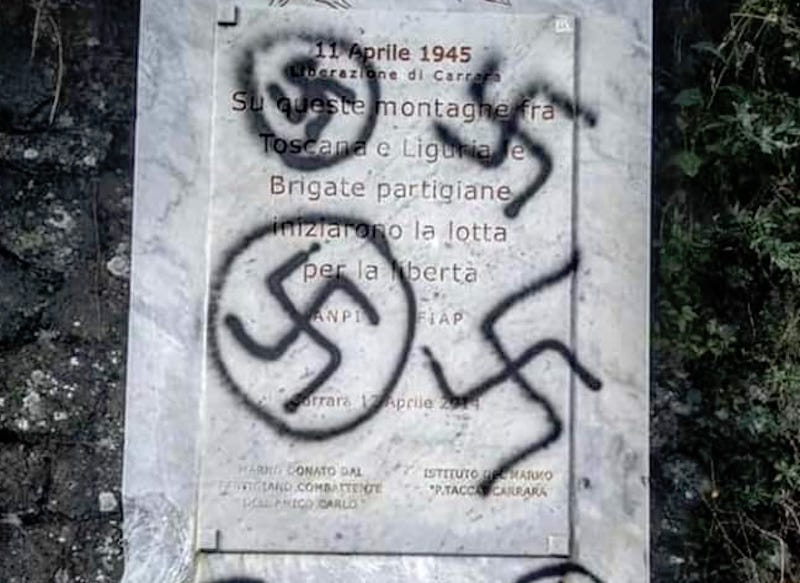C'è sgomento in Toscana per quanto accaduto in provincia di Massa Carrara. Ignoti hanno imbrattato con svastiche e scritte la lapide che ricorda la nascita delle formazioni partigiane, situata alla Spolverina, al bivio tra Campocecina e Fosdinovo. Il monumento è nato cinque anni fa grazie a una sinergia di volontà (dall’Anpi alla Cgil, dalle cooperative dei cavatori di Canalgrande a quelle di Lorano, Gioia e Amia), dall’architetto Ricci (progettista), alla Scuola del Marmo. Sono arrivate le reazioni del mondo politico e non solo.