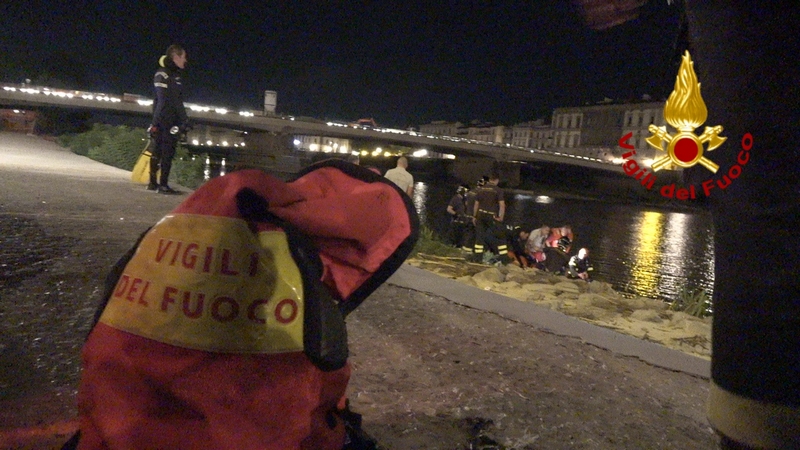 Sul posto sono intervenuti i vigili del fuoco di Firenze. A bordo del gommone congiuntamente con il Nucleo Sommozzatori, e con gli uomini a terra lungo le sponde, hanno iniziato le ricerche in prossimità della pescaia di Santa Rosa. Personale SAF (speleo alpino fluviale) ha perlustrato il punto di ultimo avvistamento, situato sotto la terrazza dove si trova una chiusa in prossimità della pescaia. Sul posto anche il personale sanitario del 118.