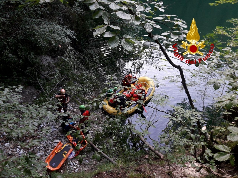 Una volta stabilizzata è stata trasportata sulla sponda opposta del lago per essere imbarcata dell'elisoccorso precedentemente allertato dal soccorso alpino. Sul posto anche i Carabinieri.