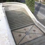 L’intervento effettuato in questa porzione di scalinata è stato minuzioso ed ha interessato le superfici lapidee, che sono state prima pulite con tecniche restaurative che hanno previsto anche l’uso di resine a scambio ionico e risciacqui con acqua demineralizzata nebulizzata a bassa pressione, e poi liberate dalle piante infestanti.