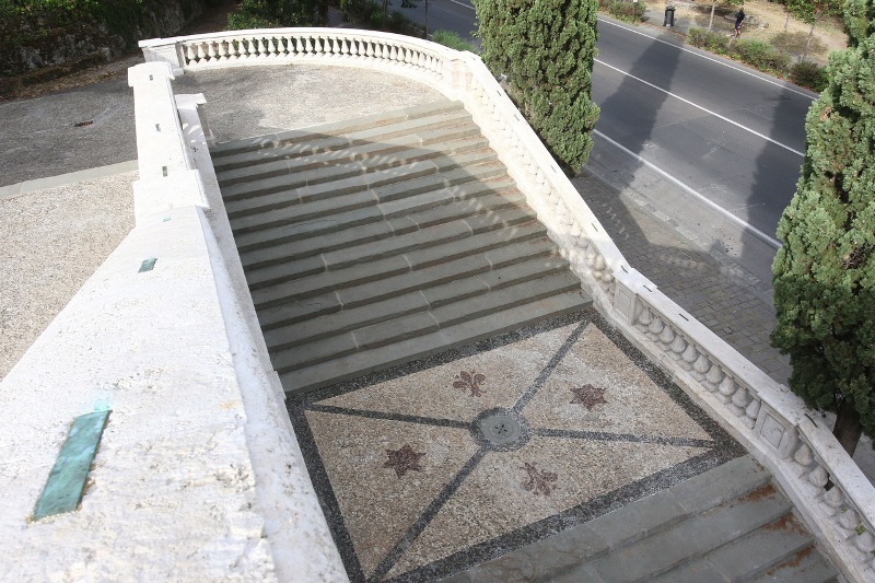 L’intervento effettuato in questa porzione di scalinata è stato minuzioso ed ha interessato le superfici lapidee, che sono state prima pulite con tecniche restaurative che hanno previsto anche l’uso di resine a scambio ionico e risciacqui con acqua demineralizzata nebulizzata a bassa pressione, e poi liberate dalle piante infestanti.