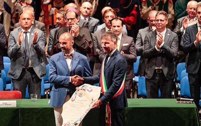 Questa mattina al Teatro Comunale dei Rinnovati, il sindaco Luigi De Mossi, durante la solenne cerimonia per la festività di Maria S.S. Assunta in cielo, Patrona e Regina di Siena, ha consegnato il “Premio Mangia 2019” a Emanuele Montomoli (candidato dalla Contrada Sovrana dell’Istrice). Il più prestigioso riconoscimento della città che il Concistoro del Monte del Mangia ha deciso di consegnargli per il suo lavoro di ricercatore nella prevenzione delle malattie infettive, delle vaccinazioni e nell'ambito dell’epidemiologia, nonché di imprenditore di biotecnologie a livello internazionale.