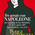 Le conversazioni proseguono: martedì 20 agosto 2019 con Peter Hicks, docente universitario di storia, storico e responsabile delle relazioni internazionali della Fondation Napoléon di Parigi, che affronta il tema “Napoleone, le prime biografie e i suoi scritti tra Plutarco, Annibale e Tito Livio”; mercoledì 21 agosto 2019 con la conversazione dal titolo “Dal ballo al campo di battaglia: la moda ai tempi di Napoleone” in cui Margarita Martinez, costumista ed organizzatrice di Gran Balli Napoleonici internazionali, presenterà i vestiti da ballo dall’inizio dell‘800 e la collezione di stampe del Costume Parisien che li ha resi indimenticabili.