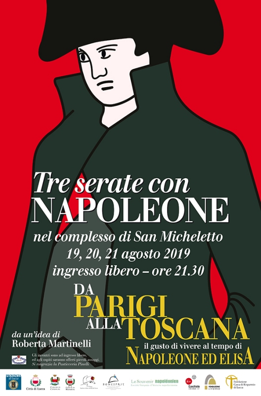 Le Conversazioni napoleoniche, giunte alla tredicesima edizione, fanno parte del progetto “Da Parigi a Lucca: il gusto di vivere al tempo di Napoleone e Elisa”, ideato da Roberta Martinelli e realizzato con il contributo della Fondazione Cassa di Risparmio di Lucca e in collaborazione con Le Souvenir Napoléonien, associazione internazionale di cui Martinelli è corrispondente per la Toscana occidentale.