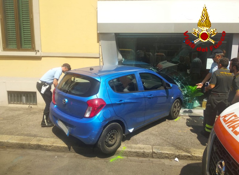 La macchina avrebbe sfondato la vetrina del negozio, chiuso in quel momento, dopo lo scontro con un'altra auto. L'incidente è avvenuto alle 13.30. Nelle auto che si sono scontrate c'erano due donne, di 60 e 70 anni, che non hanno riportato ferite gravi. Una delle due macchine ha sbandato finendo prima sul marciapiede e poi nella vetrina. Per i soccorsi e la messa in sicurezza dell'area la strada è rimasta chiusa per circa un'ora, ma non ha creato grossi problemi alla viabilità.