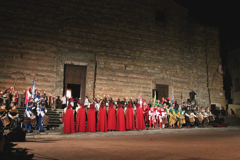 Le prove avranno una giornata di pausa giovedì 22 agosto, serata dedicata al tradizionale appuntamento con il Corteo dei Ceri. Il suggestivo corteo storico partirà alle ore 21:30 dalla Colonna del Marzocco e sfilerà lungo le vie cittadine fino a Piazza Grande, attraversando il centro storico illuminato esclusivamente da torce e fiaccole. Alle ore 22:00 si terrà sul sagrato del Duomo l’offerta dei ceri in nome di San Giovanni Decollato e l’esibizione del Gruppo Sbandieratori e Tamburini di Montepuciano. A seguire si terrà uno spettacolo di danza verticale a cura della Compagnia Il Posto Vertical Dance Centre, intitolato “Bestiario”. Successivamente, sempre in Piazza Grande, lo spettacolo messo in scena dalla Compagnia Accademia Creativa che narra la storia di Orfeo ed Euridice, con effetti di luce pirotecnica per un’esibizione sorprendente. I biglietti per tribune e platea, dal costo di 12,00 €, sono a disposizione fino a eusarimento presso gli uffici turistici della Pro Loco di Montepulciano (Piazza Don Minzoni, 1) e della Strada del Vino Nobile di Montepulciano (Piazza Grande, 7). Ingresso gratuito per bambini fino a tre anni.