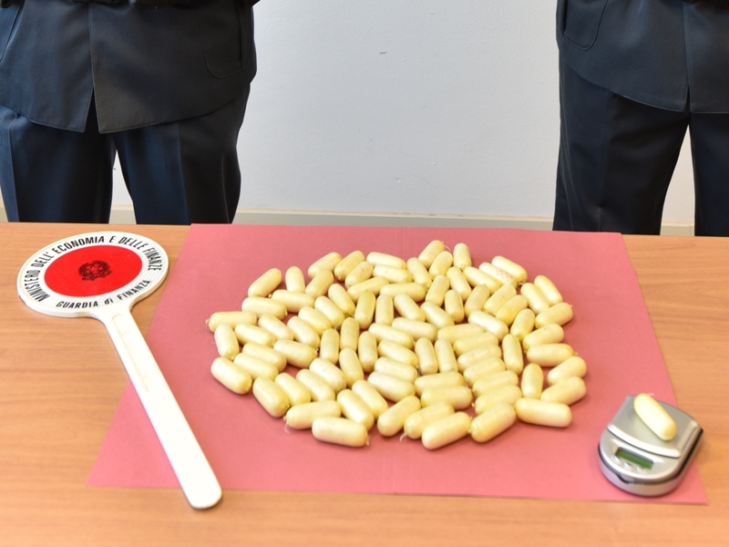 L’esame a raggi X ha evidenziato la presenza di 88 ovuli che, successivamente, sono risultati contenere cocaina, per un peso complessivo pari a 1.014,82 grammi.