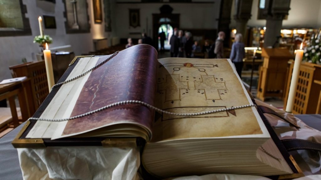 Il Codex Amiatinus, o Bibbia Amiatina, fu trascritto a mano nei monasteri di Wearmouth e di Jarrow in Northumbria (Inghilterra nord-orientale), tra la fine del VII e gli inizi dell’VIII secolo, da almeno sette copisti, a partire da un volume che proveniva dal monastero di Vivarium in Calabria. Fu l’abate Ceolfrith, dei due monasteri inglesi, a farne eseguire tre copie. Il Codex Amiatinus è l’unica copia ancora disponibile. La più antica testimonianza del legame fra la cultura anglosassone e quella latina.