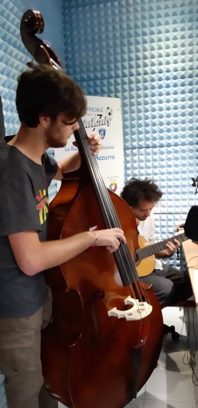 OstDuo è un progetto che arriva da Massa e da Pietrasanta, che mira a suonare i brani tratti dalle colonne sonore dei film attuali. I brani, spesso orchestrali, vengo arrangiati utilizzando un linguaggio che si avvicina al jazz senza però tralasciare la ricerca di un suono “classico”. Il duo è infatti costituito da un contrabbasso affiancato ad una chitarra elettrica! Il sound di Fabio e Francesco è la risultante dell’equilibrio dinamico che si genera tra questi due strumenti molto distanti tra loro a livello culturale. In studio ci hanno proposto due brani ispirati allo spazio scritti da Francesco.