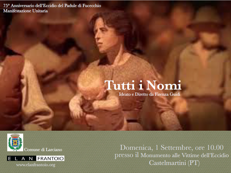 Un'opportunità per l’organizzazione dell’evento Tutti i Nomi con la regista Firenza Guidi, in occasione della commemorazione del 75° anno dell'eccidio del Padule di Fucecchio. L'evento si terrà al monumento di Castelmartini domenica 1 settembre, tra le 9 e le 10.30. Per l'evento la regista punta a ricreare la presenza civica di 174 persone di tutte le età. Per partecipare basta inviare una mail a info@elanfrantoio.org oppure un messaggio a 3394129663 indicando "Partecipazione a Tutti i Nomi”. La parte di spettacolo che coinvolge le comparse durerà circa 20 minuti. Le prove verranno effettuate il 31 agosto.