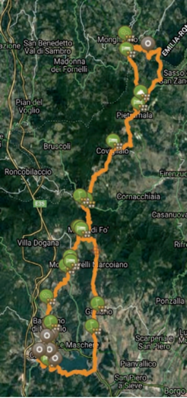 Ritrovo in Villa Torre Palagio a Barberino di Mugello-via del Torracchione 50031 Cavallina (FI) partenza ore 10.30. Partenza Villa Torre Palagio, Cavallina, piazza Cavour, Montecarelli, Passo della Futa, Passo della Raticosa, Piancaldoli, Frassineta, Campeggio, Monghidoro, Passo della Raticosa, Passo della Futa, le Maschere, via Nazionale in direzione San Piero, via Gastone Nencini, Cavallina in via del Torracchione con rientro in Villa dove si terrà l’aperitivo e il pranzo in riva al lago con tanto di premiazione..