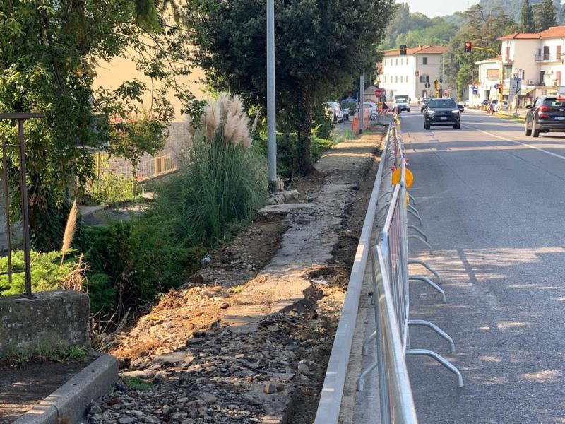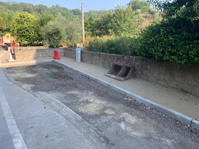 Dopo aver ultimato, nel mese di agosto, il parcheggio e il marciapiede in via XX Settembre, davanti alla scuola Petrarca, e due lati di marciapiede sulla strettoia del Burchio, il cantiere si è spostato in zona Fonte Bassa, dove sarà realizzato un tratto di marciapiede con ringhiera, per poi procedere con la risistemazione del marciapiede già esistente.