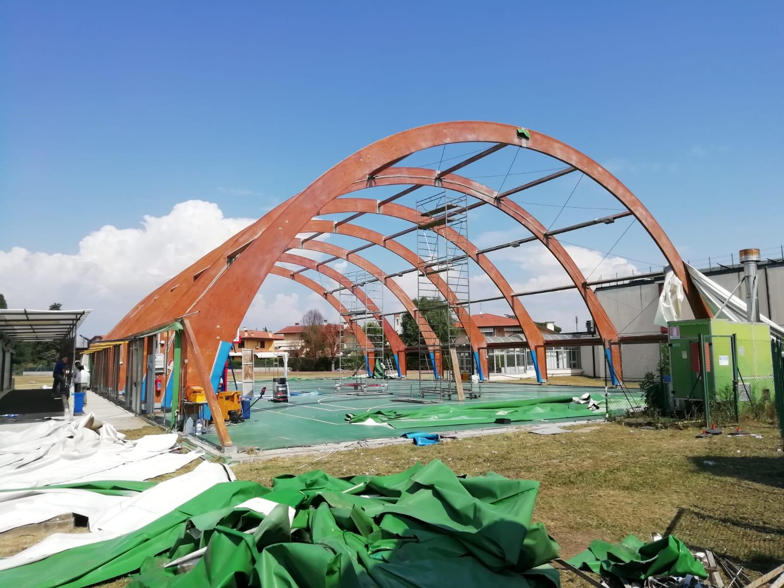 Sono iniziati giovedì 29 agosto i lavori che consentiranno la completa sostituzione della copertura alla palestra delle scuole “Filippo Mazzei”. La struttura, utilizzata sia dagli studenti che dalle società sportive, è stata “scoperchiata” nella giornata di giovedì per favorire l’intervento sulle travi che saranno trattate con degli appositi prodotti ignifughi. Entro giovedì 5 settembre, condizioni meteo permettendo, i lavori saranno conclusi con l’installazione del nuovo telone. “Non è ancora finito agosto ma eccoci a lavoro per mantenere una promessa: sostituire il “pallone” delle scuole medie. L’azienda che si era aggiudicata i lavori per prima ha rinunciato in corsa costringendoci a uno slittamento dei tempi di realizzazione. Nonostante questo, adesso ci siamo ed è quasi tutto pronto per una nuova stagione e per un nuovo anno scolastico” dichiara il sindaco di Poggio a Caiano Francesco Puggelli. “Ringraziamo sia la società sportiva Medicea Handball, sia gli studenti che i docenti per la pazienza e la comprensione: talvolta occorre riorganizzarsi in corsa per cause esterne. Nonostante sia stato necessario qualche tempo in più, finalmente ci siamo: la palestra delle Mazzei avrà una copertura nuova” conclude l’assessore ai Lavori Pubblici Tommaso Bertini.