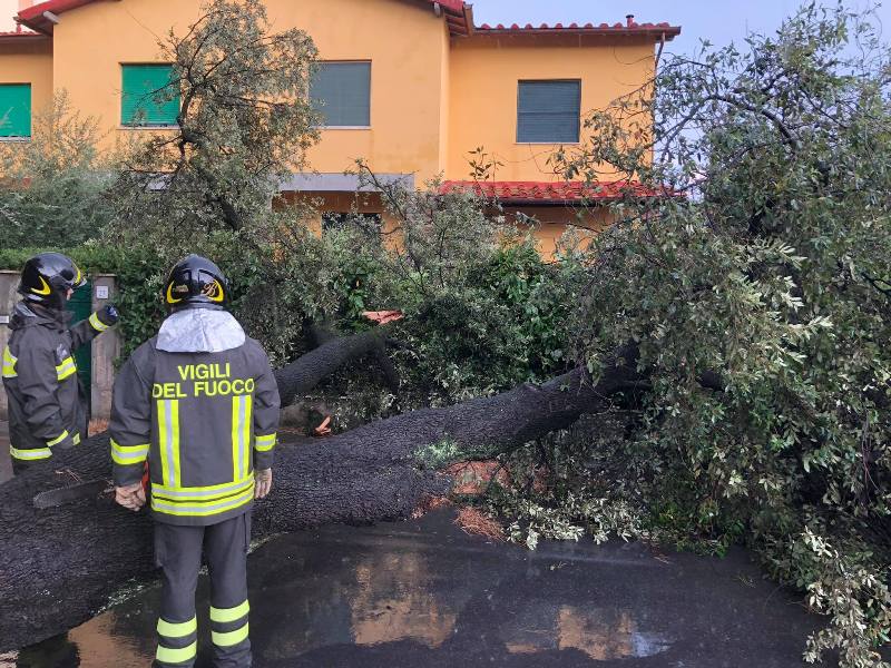 Dopo le 15.20, il maltempo si è spostato nel Pisano, in particolare su Calcinaia e Bientina, in Valdera, con intensità attenuata. Sul posto sono presenti i vigili del fuoco di Cascina e Pontedera. Anche qui gli alberi caduti sono tra i principali disagi, oltre a tegole e grondaie pericolanti. A Calcinaia sono stati rimossi gli alberi in via Tosco Romagnola, all'altezza dell'ombrellificio Ciompi, così come in via delle Case Bianche. Sono 15 gli interventi effettuati dai pompieri. Danni anche a Pescia, provincia di Pistoia, con grossi tronchi in strada dopo lo sradicamento.