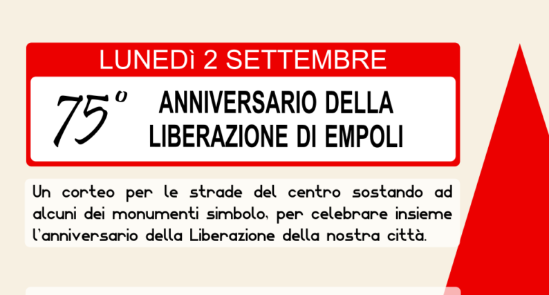 La sezione Anpi di Empoli organizza "Corteo in musica e parole" che attraverserà alcuni dei luoghi rappresentativi per celebrare, nel 75° anniversario dal 2 settembre 1944, l'avvenuta Liberazione di Empoli dal Nazifascismo.