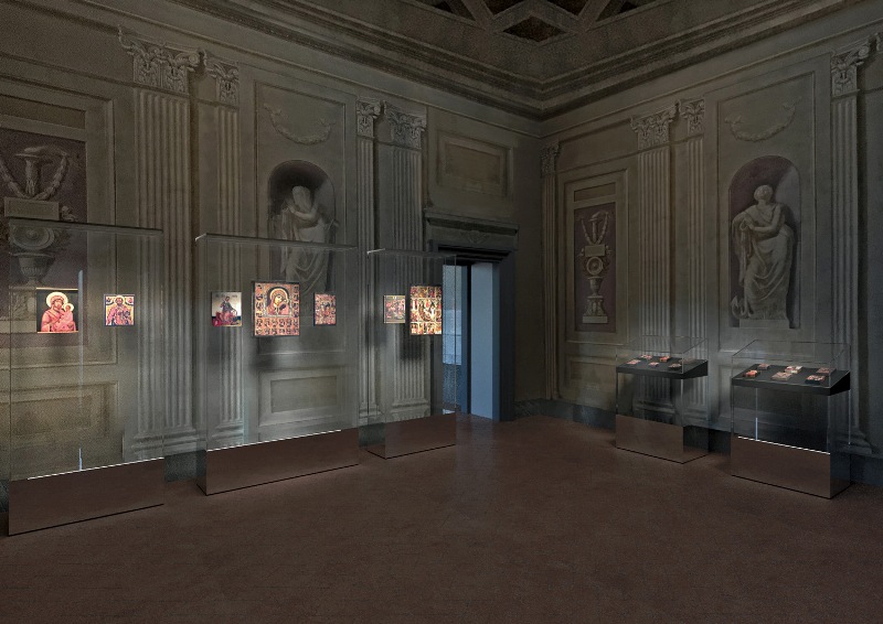 Le sale che verranno dedicate alle icone russe non sono mai state interamente e permanentemente aperte al pubblico. Le pareti e i soffitti affrescati nel ‘600 saranno valorizzati dall’allestimento curato dall’architetto Mauro Linari, che ha ideato un percorso con teche leggerissime e ben armonizzate agli ambienti. Da dicembre, con l’apertura ufficiale, sarà regolarmente visibile anche un altro spazio, finora accessibile solo saltuariamente nell’ambito di eventi ed occasioni speciali: la Cappella Palatina, con gli affreschi ottocenteschi di Luigi Ademollo ed il suo antico organo. Sarà un accostamento suggestivo della tradizione cattolica alla mistica delle immagini del culto ortodosso, visibili nelle sale adiacenti.