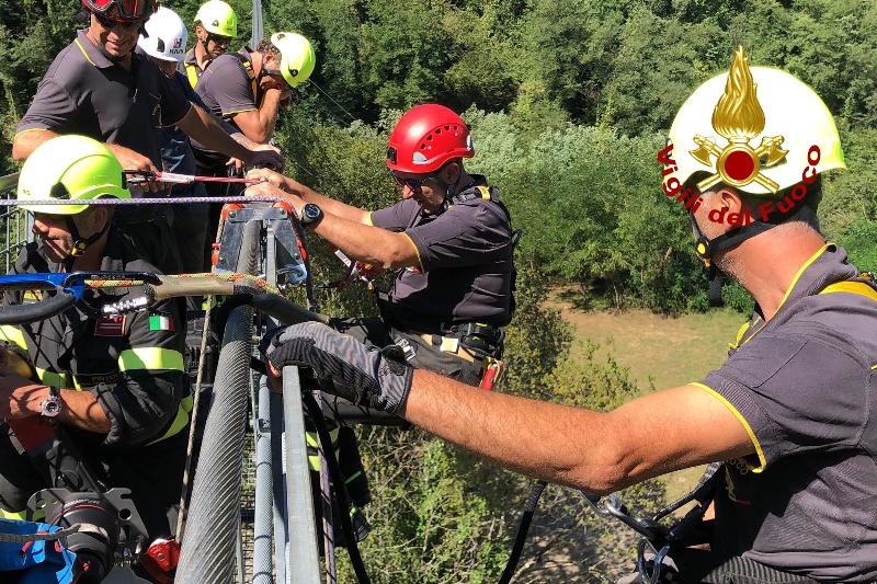 I vigili del fuoco del Comando di Pistoia hanno effettuato oggi una esercitazione presso il ponte sospeso a Mammiano, nel comune di San Marcello-Piteglio. Il personale SAF (Speleo Alpino Fluviale) ha simulato una manovra di calata dal ponte, con il recupero di una barella. Di seguito materiale foto e video dell'esercitazione.