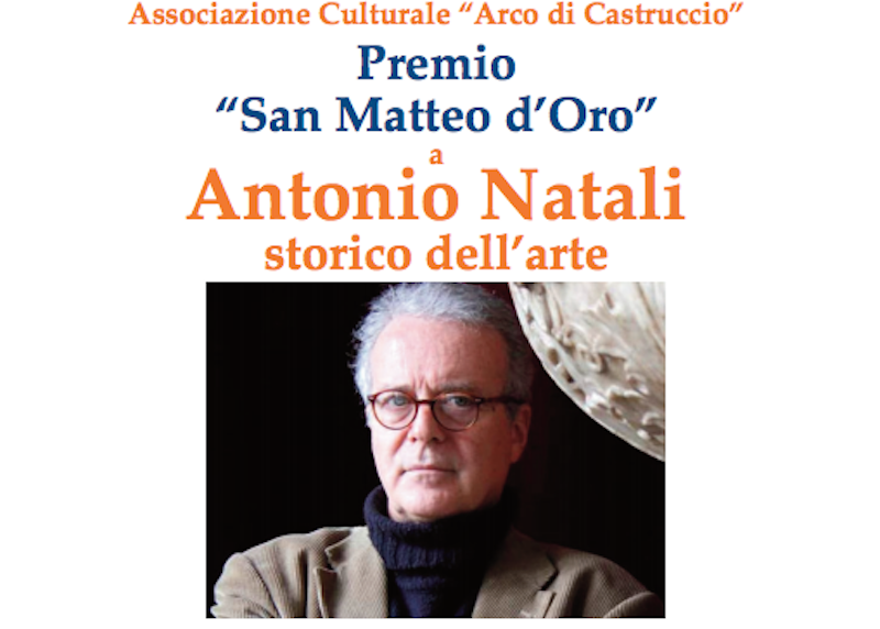 L'Associazione Culturale "Arco di Castruccio" consegna il premio "San Matteo d'Oro", giunto alla sua terza edizione, al Prof. Antonio Natali, storico dell'arte, già Direttore del Museo degli Uffizi e organizzatore dell'Opera del Duomo di Firenze, il giorno venerdì 20 Settembre alle ore 18,00 presso il Convento Francescano di San Romano guidato da Padre Valentino Ghiglia, a cui vanno i ringraziamenti più sentiti del Presidente dell'Associazione Marzio Gabbanini e di tutto il CdA.