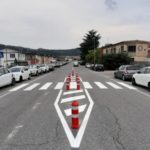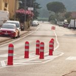 La soluzione che è sembrata essere quella più adeguata è quella di creare dei restringimenti di carreggiata usando dei “birilli” in plastica.