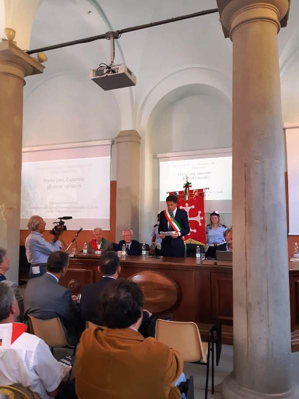 Presenti alla cerimonia Maurizio Gabbrielli, presidente della Comunità Ebraica di Pisa, il professor Fabrizio Franceschini, direttore del Centro Interdipartimentale di Studi Ebraici dell’Università di Pisa (CISE) che ha tenuto una Lectio Magistralis su “Primo Levi, Capaneo: gli ebrei ‘pisani’” e il sindaco di Pisa, Michele Conti che è intervenuto durante la celebrazione.