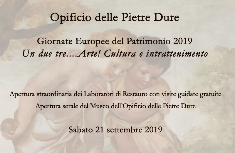 L’Opificio delle Pietre Dure di Firenze partecipa alle Giornate Europee del Patrimonio 2019, proponendo due importanti iniziative volte a condividere con il grande pubblico le sue eccellenze nella conservazione e nel restauro delle opere d’arte e nella prestigiosa tradizione del commesso in pietre dure.
