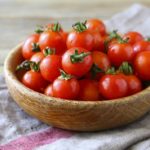Bruschette con crema di fagioli, pomodorini al coriandolo e cipolla