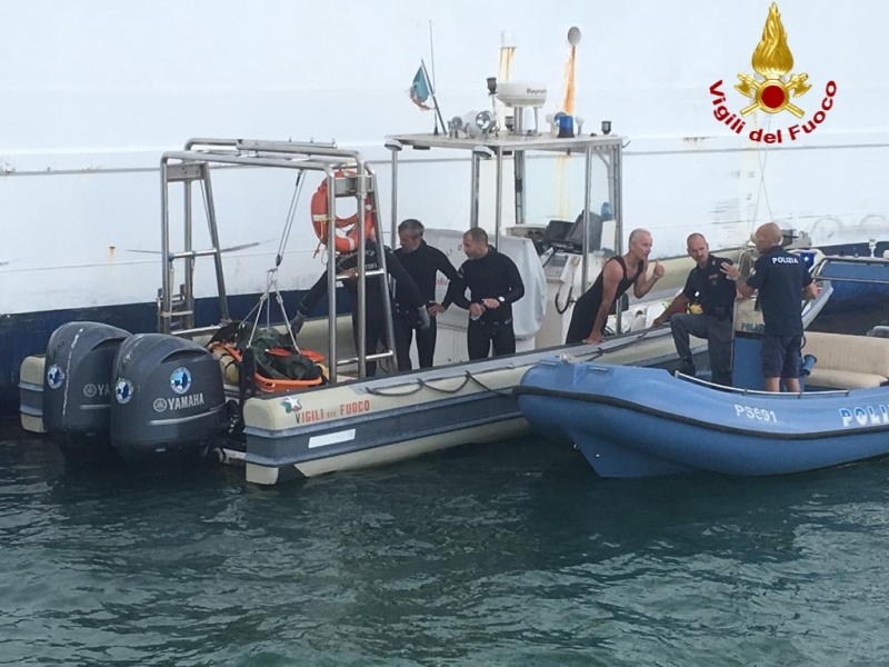 Il corpo è stato rinvenuto a circa 13 metri di profondità dai sommozzatori dei vigili del fuoco e verrà trasportato presso l'accosto del distaccamento dei vigili del fuoco in attesa di disposizioni.