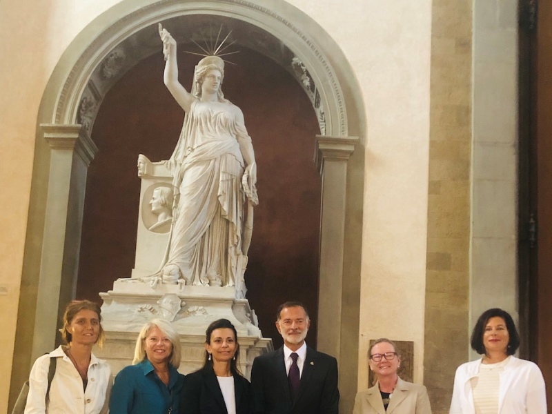 “La nostra Fondazione ha scelto di intervenire proprio nell’anno del bicentenario del Consolato Americano in città, e questo restauro sottolinea il ponte fra Firenze e gli Stati Uniti - mette in evidenza Simonetta Brandolini d’Adda - Probabilmente la scultura è stata fonte di ispirazione della Statua della Libertà a New York, per noi è certamente l’opera depositaria di quei valori di libertà e di indipendenza che hanno fondato l’identità del popolo americano”. Simonetta Brandolini ha ringraziato con i donatori che si sono impegnati, Paola Rosa e gli altri restauratori.