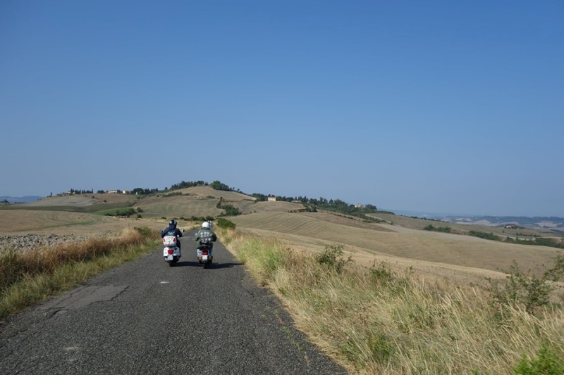 L'appuntamento era alle 8 sotto la Vela Margherita Hack di Avane, dove i primi vespisti sono stati accolti da una bella colazione. Il tempo di fare 2 chiacchiere e subito avevano la possibilità di partire, ognuno alla propria velocità, godendosi in piena libertà ogni scorcio e panorama che offriva il percorso. Il tragitto infatti era completamente segnalato e portava le nostre amate Vespe attraverso Pagnana, Ponte a Elsa, Corazzano, Alberi, Tonda, San Vivaldo, Iano, Villamagna, fino ad arrivare sotto le "Balze" di Volterra, dove i partecipanti sono stati accolti a "Villa Otium" per un aperitivo a bordo piscina, circondati dalla splendida visuale sulla Valdera.