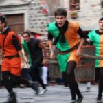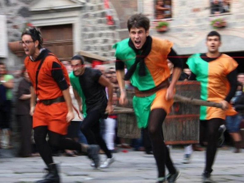 Come si intuisce, due sono le competizioni principali: la gara degli arcieri e la corsa del palio, con la prima che decide l’ordine di partenza, assegnando al vincitore la posizione migliore e, a scalare, alle altre contrade, rispettando il punteggio e la relativa graduatoria. Si determina così una “griglia” di partenza da parte delle due coppie di “barellieri” che si alterneranno durante il percorso. Si corre trasportando un contenitore di legno, il “bigonzo”, un tempo utilizzato per la vendemmia, zavorrato con un peso uguale per tutti, calcolato di volta sulla base del più pesante (intorno ai 20 chili). La competizione, che sarà ripresa per l’intero percorso e proiettata su un grande schermo nei pressi della partenza si svolge lungo le vie del paese, con partenza dalla porta Romana e arrivo in direzione nord nella centrale piazza San Pietro. La manifestazione, relativamente recente, è la celebrazione degli insediamenti che formavano la comunità di Radicofani, ora concentrata in un unico abitato, ai piedi del castello, ma anche di quella che un tempo era l’attività principale del territorio. La viticoltura, negli statuti del 1255 e del 1411, era meticolosamente regolamentata. La produzione era cresciuta durante i secoli sino ad arrivare a duemila some di vino, equivalenti a tremila ettolitri. La zona più vocata per questa produzione era una valle dove, dal XVII secolo, fu costruito il piccolo santuario della Madonna delle vigne, la cui festa si celebra ogni 8 di settembre. Ricollegandosi proprio a questa festa nell’anno 2006 fu riproposta la corsa del Palio relativi ai quattro borghi che esistevano fin dal Medioevo. Il “Palio del bigonzo” si presenta, anche sotto l’aspetto artistico, in grande stile: Iustina Barbulescu ha dipinto il drappellone, che andrà alla Contrada vincitrice, mentre le Ceramiche il Volo di Sarteano hanno realizzato il simbolico piatto dipinto e la pergamena destinati agli arcieri più bravi. Per inciso, Radicofani vanta una società sportiva che primeggia ai massimi livelli di una particolare disciplina, quella di tiro con l’arco da caccia, che fa capo a una federazione del Coni. Sarà una sfida tra molti protagonisti ai recenti campionati italiani, nelle varie categorie, da no perdere Intanto sono stati rinnovati i vertici dell’organizzazione della festa. Al Magistrato delle contrade, all’unanimità, è stato eletto nuovo rettore Alfredo Rossi, già membro onorario insieme a Renato Magi e a Giovanni Fatini, scomparso di recente, tra gli ideatori del Palio radicofanese: a lui è dedicato il torneo degli arcieri. Anche le Contrade, che nel nome ricordano i vari borghi di Radicofani, hanno rinnovato i loro vertici.