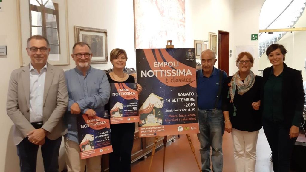 Nottissima continua il suo viaggio verso le atmosfere classiche (e non solo) per la nona edizione in programma sabato 14 settembre dalle 18.30 fino a tarda notte. Le istituzioni musicali del territorio (Centro Studio Ferruccio Busoni, Cam, Empoli Jazz) dialogano con quelle culturali (biblioteca Renato Fucini, musei civici, Giallo Mare Minimal Teatro) per la festa della cultura.