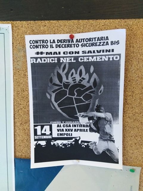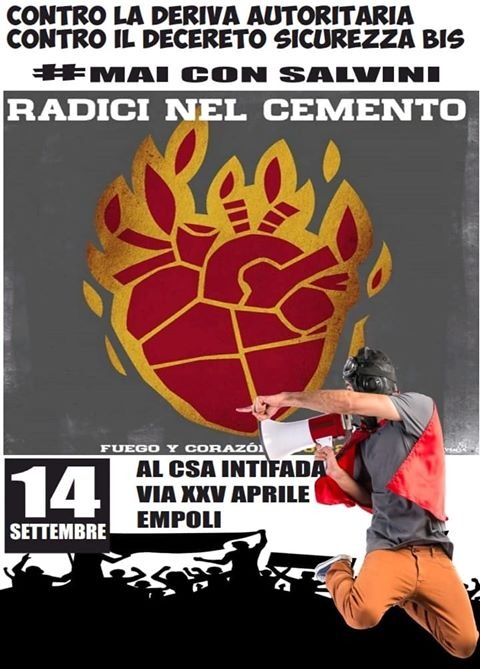 Sabato sera, 14 settembre, al Csa Intifada di Empoli in via XXV Aprile, si terrà una serata contro il Decreto Sicurezza e Salvini. Ad animare l'evento, il grande concerto delle 'Radici nel cemento', famosa band romana.