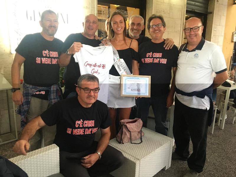 La giovane, eletta come Miss Toscana e in gara a Miss Italia, è stata omaggiata dal gruppo Greggi alla Rete, santacrocese doc come lei. In pieno centro a Santa Croce, nei locali del bar Giannini, ha ricevuto una targa e un certificato.