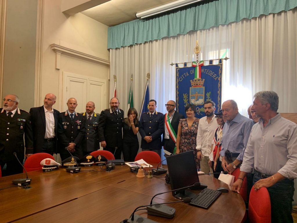 Alle parole del maggiore non sono mancate le risposte commosse di tutte le forze dell’ordine che operano nel territorio pontederese. Uno ad uno intorno al tavolo della sala consiliare, hanno descritto il lavoro svolto dal comandante ma soprattutto la mancanza che sentiranno sulla loro pelle, di un uomo con il quale si era creato uno “stretto rapporto personale”. Grande stima nei panni neri e Rossi ma anche fuori, “punto di riferimento, ha dato anche più di quanto doveva, sempre nell’ottica del buon funzionamento di Pontedera”. Per questi motivi tutti i colleghi si sono dimostrati speranzosi nell’arrivo del nuovo comandante, ma malinconici nel lasciare Cataneo, “Colonna fondamentale, per l’arma e la sicurezza, ma anche per il rapporto umano instaurato tra noi e nella rete cittadina”.