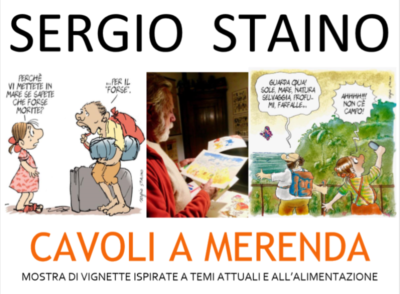La mostra di vignette comprende una selezione delle opere esposte in “Cavoli a merenda”, allestita nel 2015 al MACRO di Roma e all’interno di Eataly di Roma Ostiense. In particolare saranno esposte una serie di vignette realizzate per alcuni giornali, come l’ “Unità” e l’ “Espresso” e per la rivista “Dimensione agricoltura” della Confederazione italiana agricoltori. Le opere di questo filone artistico trattano di ambiente e del rapporto tra l’uomo e il mondo che lo circonda, in particolare attraverso la lente d’ingrandimento dell’alimentazione. Le opere esposte sono state eseguite da Sergio Staino dopo il 2000, da quando ha deciso di passare integralmente al disegno digitale. La mostra è organizzata dall’Associazione culturale Art@ltro di Massa Marittima con il patrocinio del Comune di Casole d’Elsa.