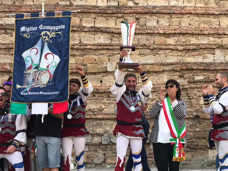 Entusiasta della performance del suo gruppo si dichiara Federico Fanelli, presidente della compagnia di Amelia. “Come tutti gli anni l’impegno è tanto – racconta – ma quest’anno qualcosa di più c’è stato: il lavoro quotidiano dei ragazzi più giovani, e si è visto, nonché una sinergia fortissima tra Andrea Pimpolari e Luigi Bordo che ci ha dato una carica pazzesca. Festeggiamo questi nostri 25 anni di attività della compagnia come meglio non si poteva, specie considerando che quest’anno mi sono rimesso in gioco personalmente in qualità di presidente. Sono veramente contento e orgoglioso del lavoro svolto dai ragazzi, a cominciare da Pimpolari, Bordo, Fabio Barcherini e Alessandro Quadraccia che formavano la piccola squadra, ma veramente il mio bravo va a tutti, compresi i musici e i loro responsabili Stefano Pernazza e Antonio Bussetti, e per gli sbandieratori Mauro Barcherini. Il gruppo non so a chi la dedicherà, ma io sicuramente dedico la vittoria a mia mia moglie”.