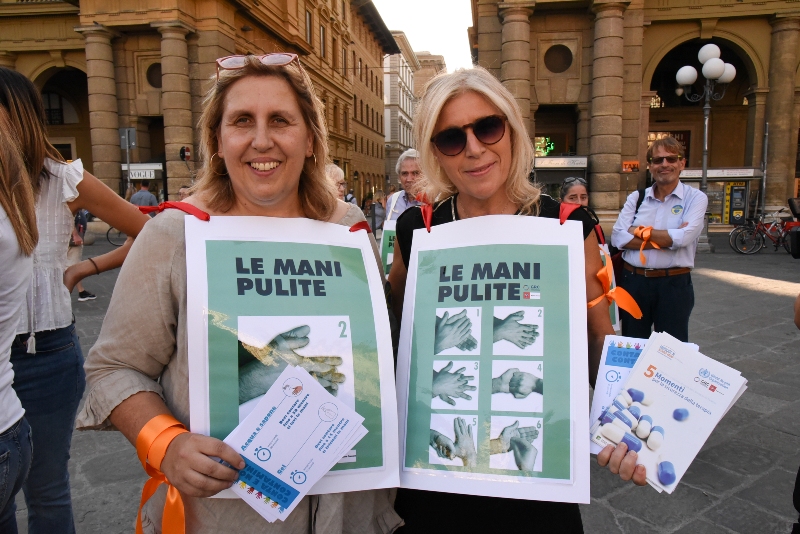 "In occasione della Giornata mondiale per la sicurezza del paziente, abbiamo voluto organizzare insieme queste iniziative, per uscire dalle nostre stanze e richiamare l'attenzione dei cittadini sul fatto che ciascuno può essere in parte artefice della propria salute, con un'attenzione al percorso di cura, all'uso corretto degli antibiotici, e perfino con un gesto semplice come il lavaggio delle mani". L'assessore al diritto alla salute Stefania Saccardi ha preso parte oggi pomeriggio, in piazza della Repubblica, al flash mob dedicato al lavaggio delle mani, nell'ambito della prima Giornata mondiale per la sicurezza del paziente. Al flash mob hanno partecipato scuole di ginnastica (Ginnastica Il Poggetto S.S.D e FGI Federazione ginnastica d'Italia) e operatori sanitari e cittadini. Al termine della performance è stato distribuito materiale informativo sul lavaggio delle mani e sulla sicurezza di terapia da parte degli studenti di infermieristica, che indossavano pannelli esplicativi sulle fasi del corretto lavaggio delle mani.